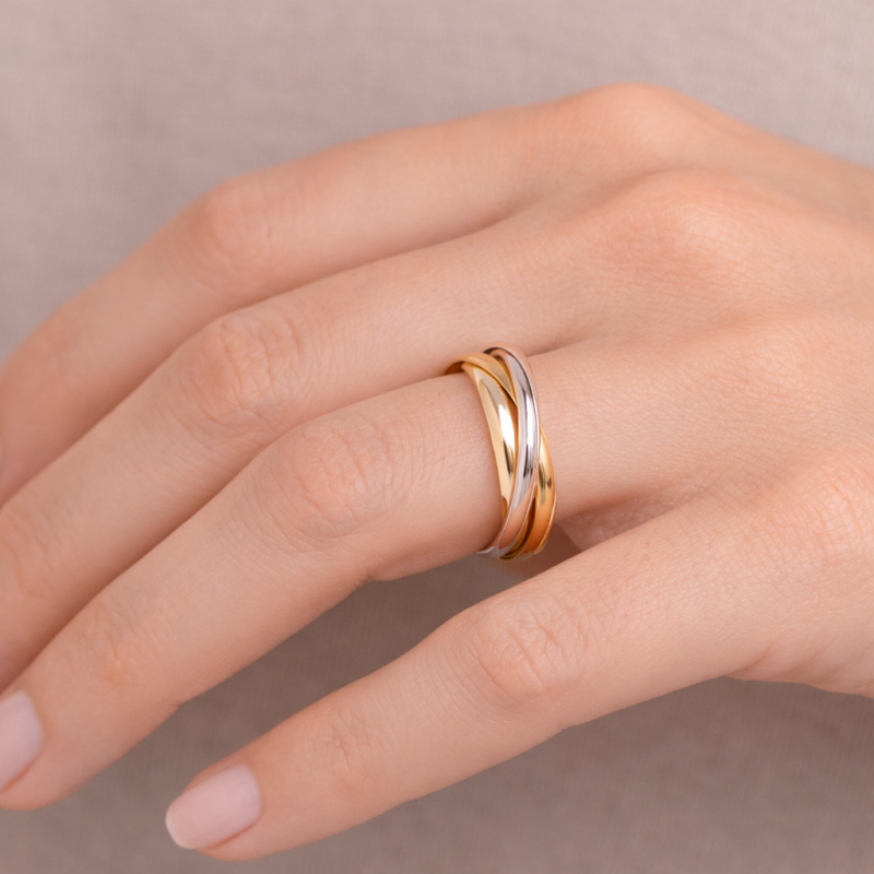 Alliances 56d 3 Anneaux Bicolore. Plaqué-Or.