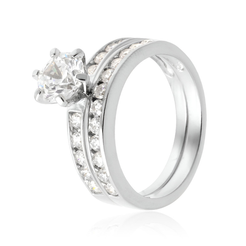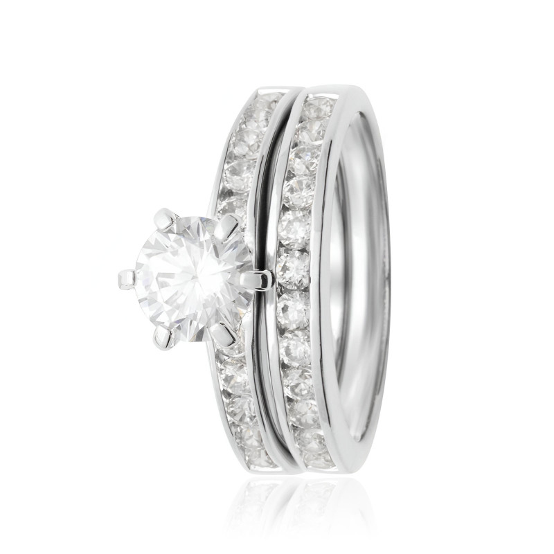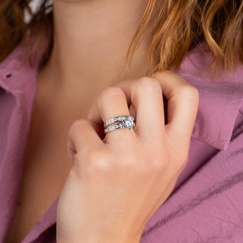 Bague 54d Solitaire 6 Griffes 2 Anneau. Argent 5gr Blanc. Oxyde de zirconium Sertis-Griffes Sertis-Rail Blanc.