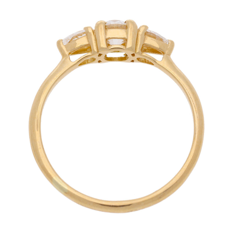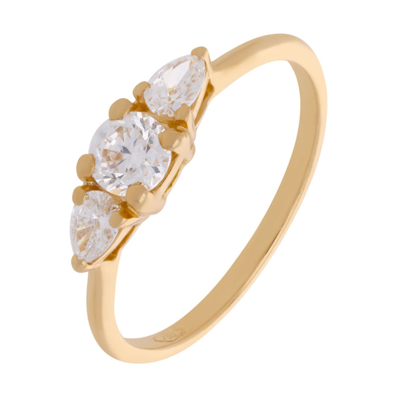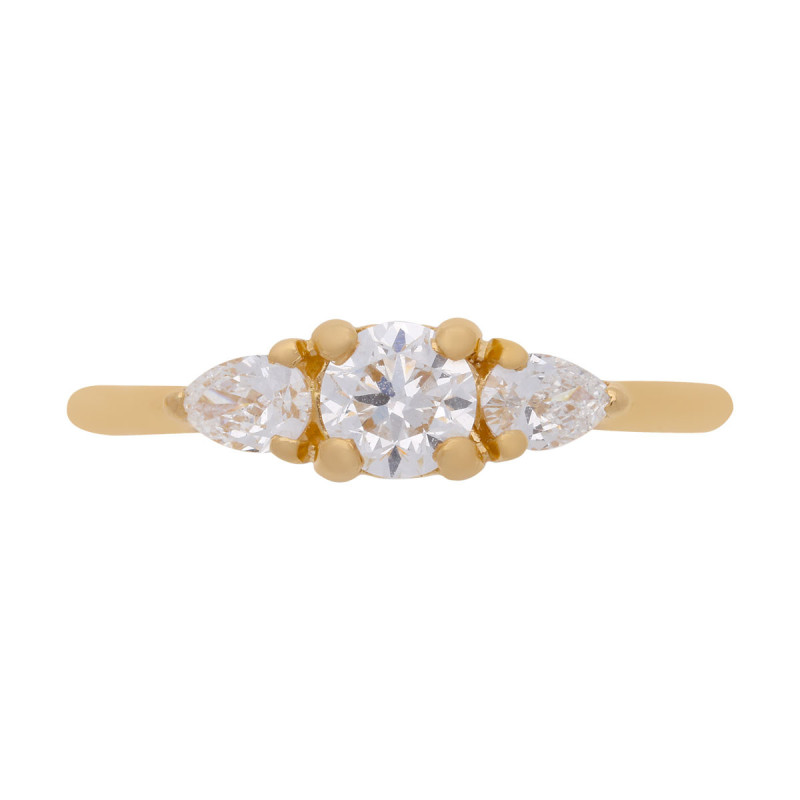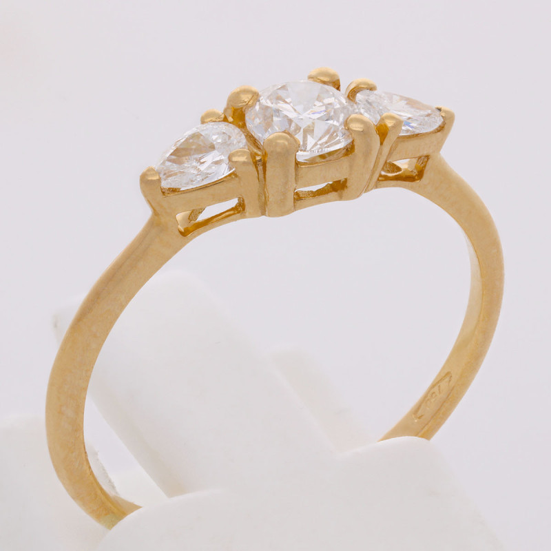 Bague 54d. Or 750‰ 1,85gr Jaune. Diamant Laboratoire (de synthèse) 0,600ct 1 Brillant 2 Poire Sertis-Griffes.
