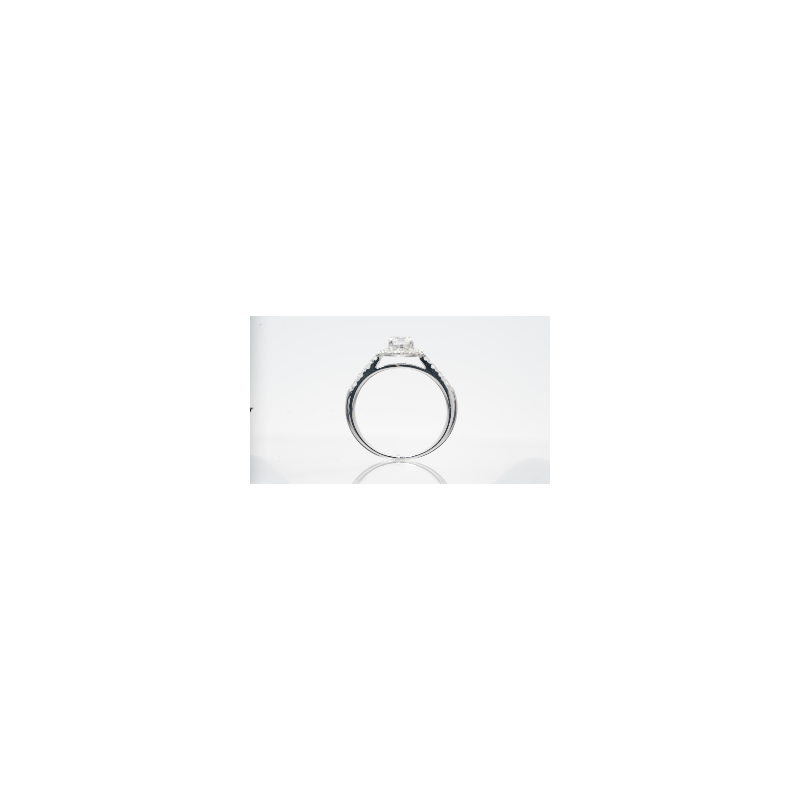 Solitaire 54d. Or 375‰ 2,20gr Blanc. Diamant Laboratoire (de synthèse) 0,950ct Sertis-Griffes F VS.