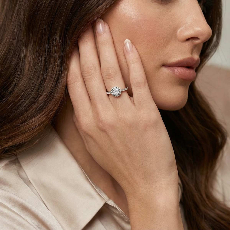 Or blanc 375 et diamant de laboratoire 0.95ct