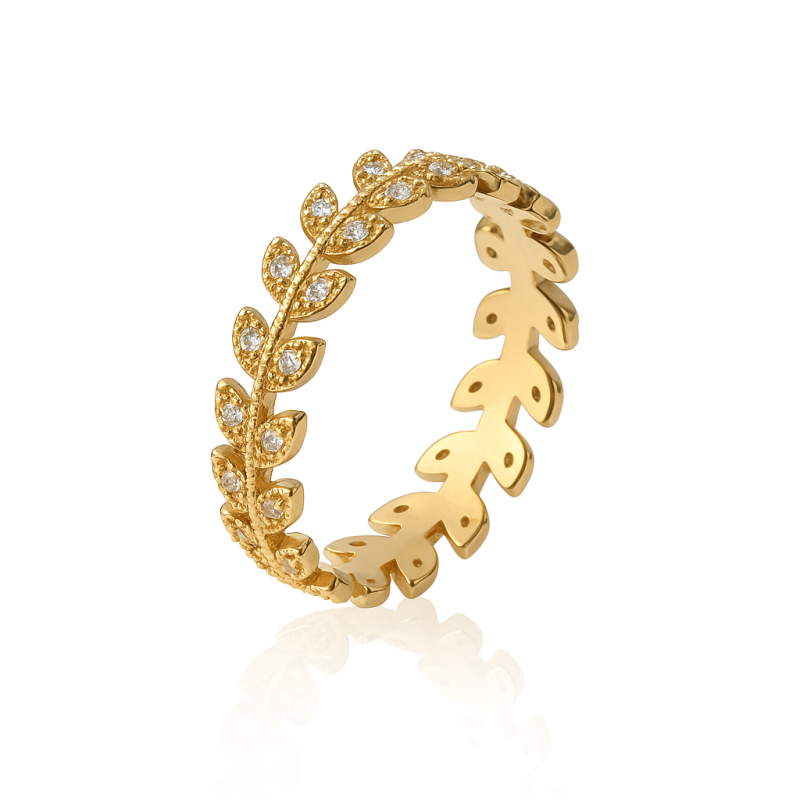 Bague Feuilles Agrémenté. Plaqué-Or Jaune. Oxyde de zirconium Blanc Sertis-Grains.