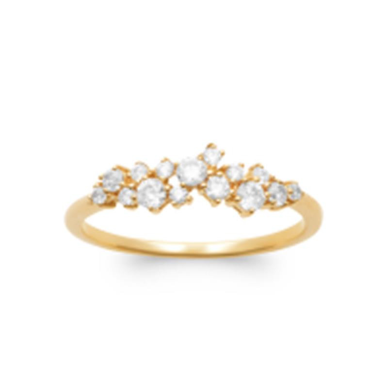 Bague 54d Femme Vague Compo. Plaqué-Or Jaune. Oxyde de zirconium Sertis-Griffes Blanc.