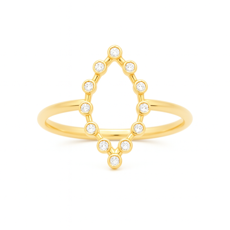 Bague 52d Femme Navette Ajouré. Plaqué-Or Jaune. Oxyde de zirconium Sertis Clos Blanc.
