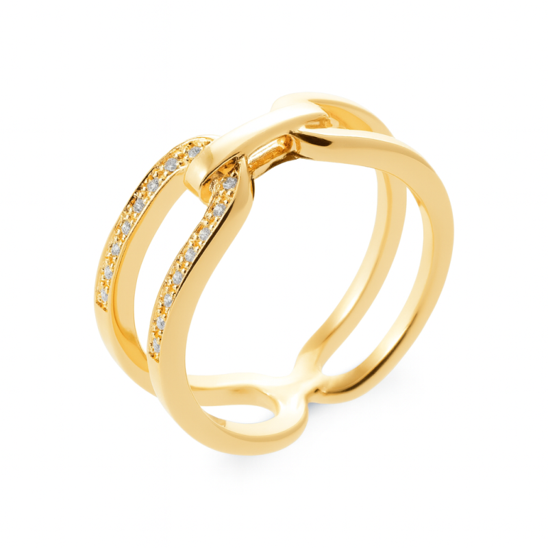 Bague 56d Femme Pendante Etrier. Plaqué-Or Jaune. Oxyde de zirconium Sertis-Rail Blanc.