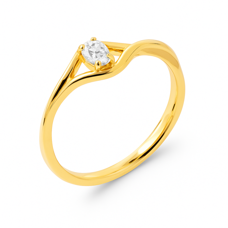 Bague 50d Femme Losange Navette Solitaire Navette. Plaqué-Or Jaune 3 microns. Oxyde de zirconium Sertis-Griffes Blanc.