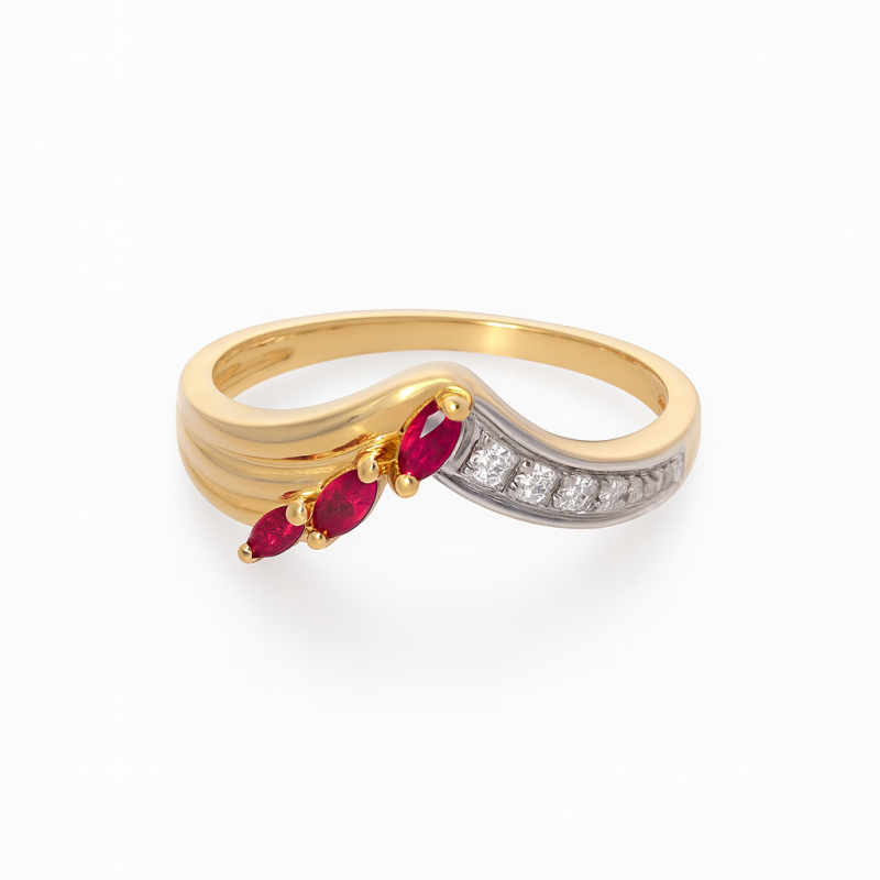 Bicolore Or 375, Rubis 0.40ct et Diamants