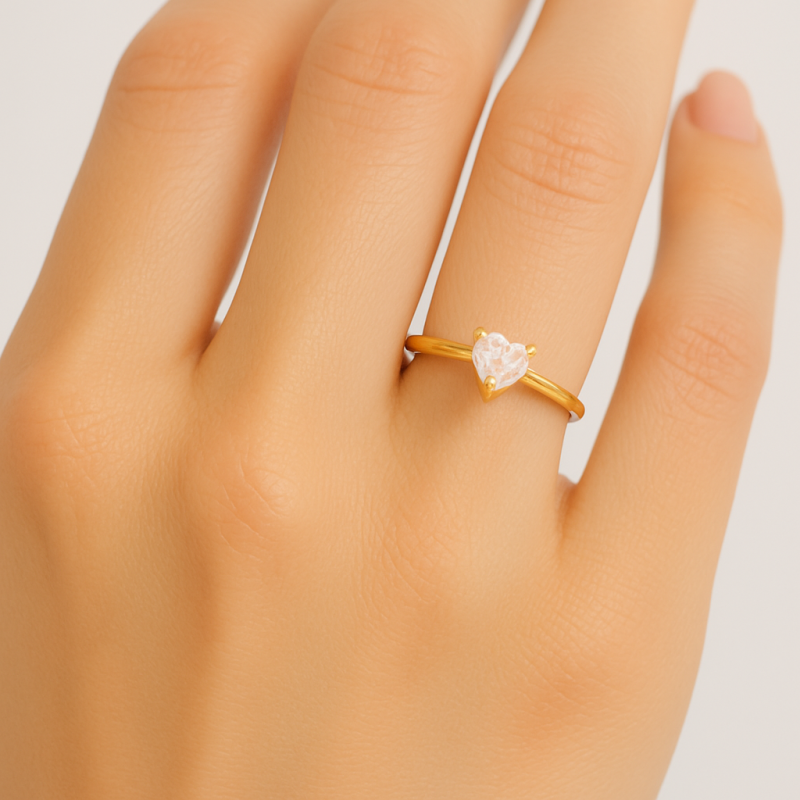 Solitaire 54d 3 Sertis-Griffes Coeur. Or 375‰ 0,75gr Jaune. Oxyde de zirconium Coeur.