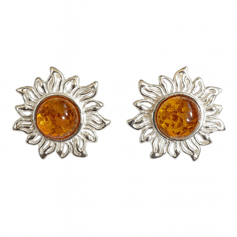 Boucles d'oreilles Clou Fleur. Argent 1,40gr. Ambre.