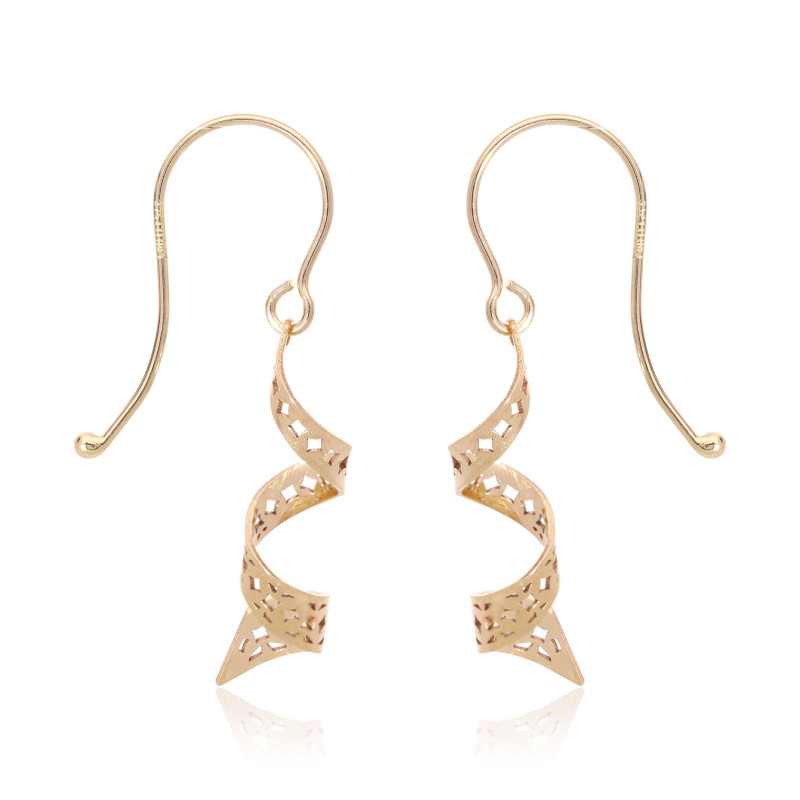 Boucles d'oreilles Crochet Motif Torsadé Pendante. Or 375‰ 0,48gr Jaune.