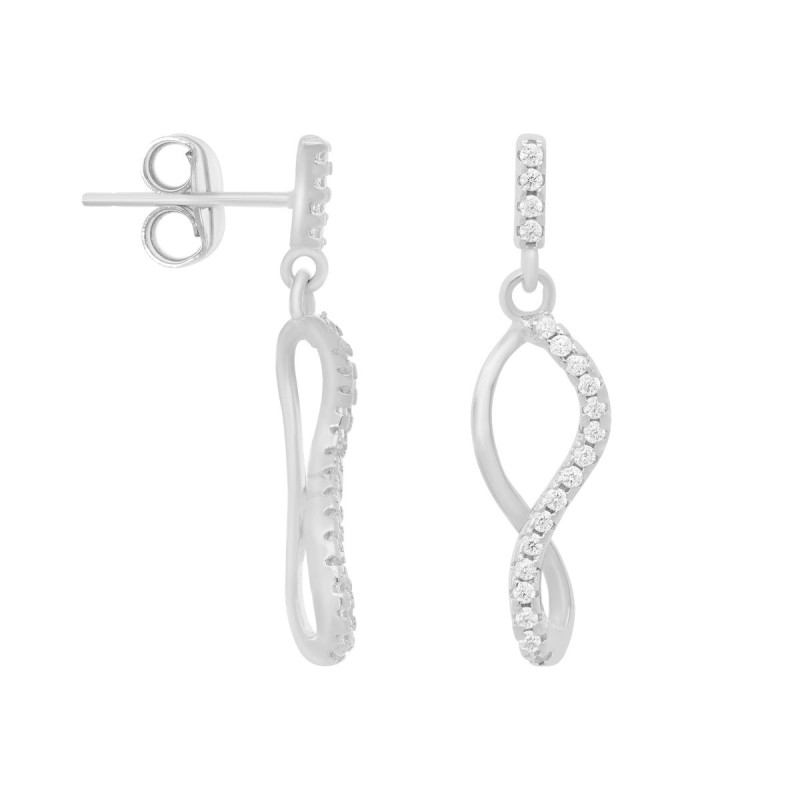 Boucles d'oreilles Femme Pendante Vague 8 Infini. Argent 1,72gr Blanc. Oxyde de zirconium Sertis-Griffes Blanc.