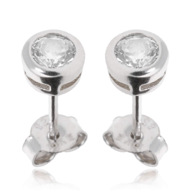 Boucles d'oreilles Clou Solitaire 5MM. Argent 1,10gr. Oxyde de zirconium Sertis Clos.