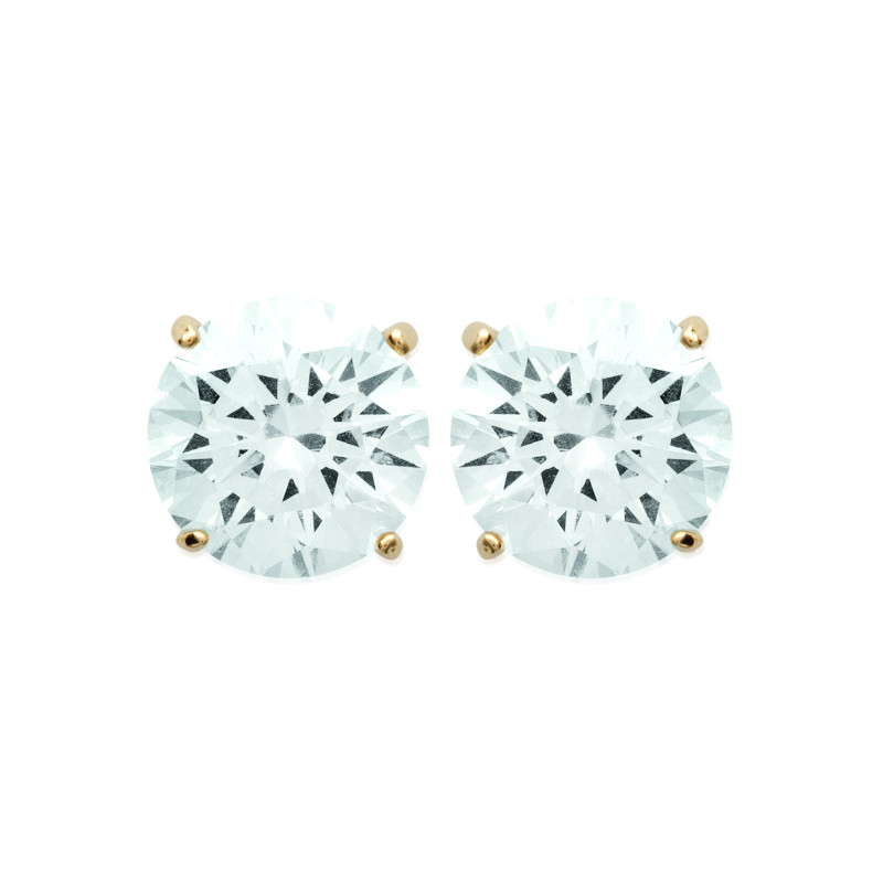 Boucles d'oreilles Solitaire 6MM 4 Griffes. Plaqué-Or. Oxyde de zirconium Sertis-Griffes.