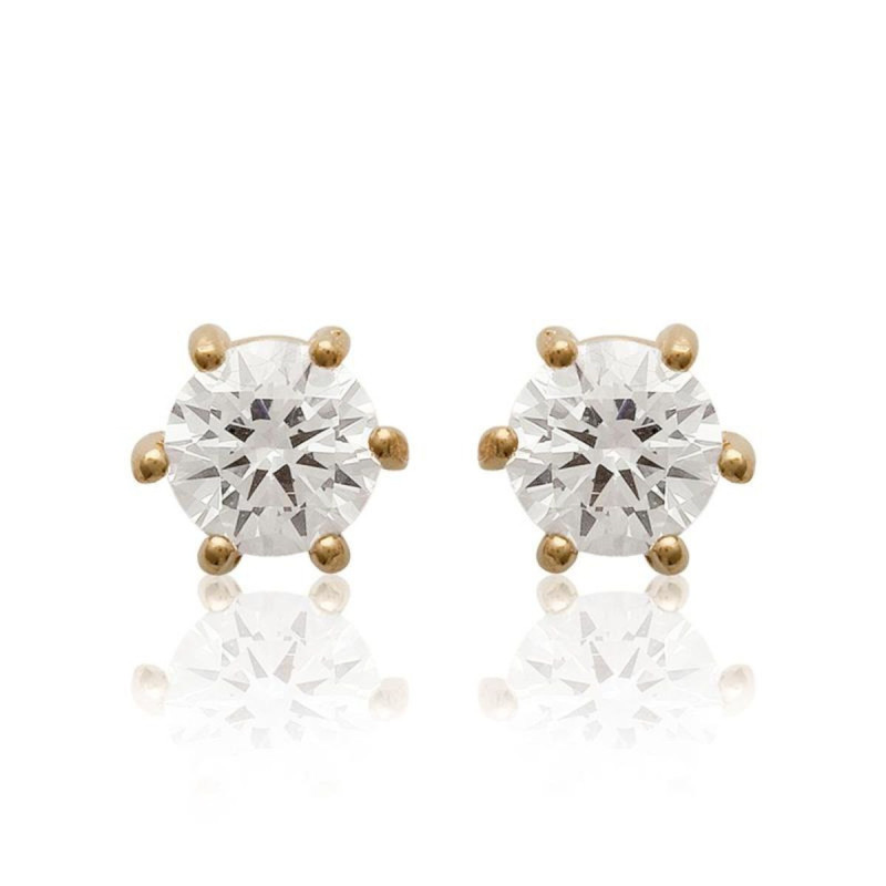 Boucles d'oreilles Solitaire 5MM 6 Griffes. Plaqué-Or. Oxyde de zirconium Blanc.