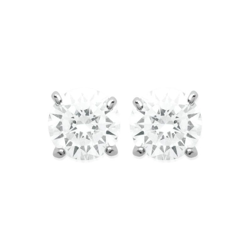 Boucles d'oreilles Solitaire 4MM Griffes. Argent 0,85gr Blanc. Oxyde de zirconium 4 Sertis-Griffes.