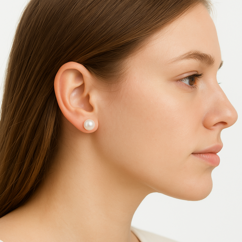 Boucles d'oreilles Solitaire Clou. Or 750‰ 0,48gr Jaune. Perle Bouton 10MM 10,5mm Culture.