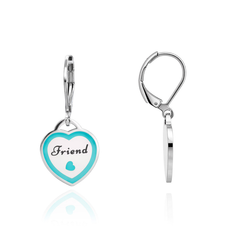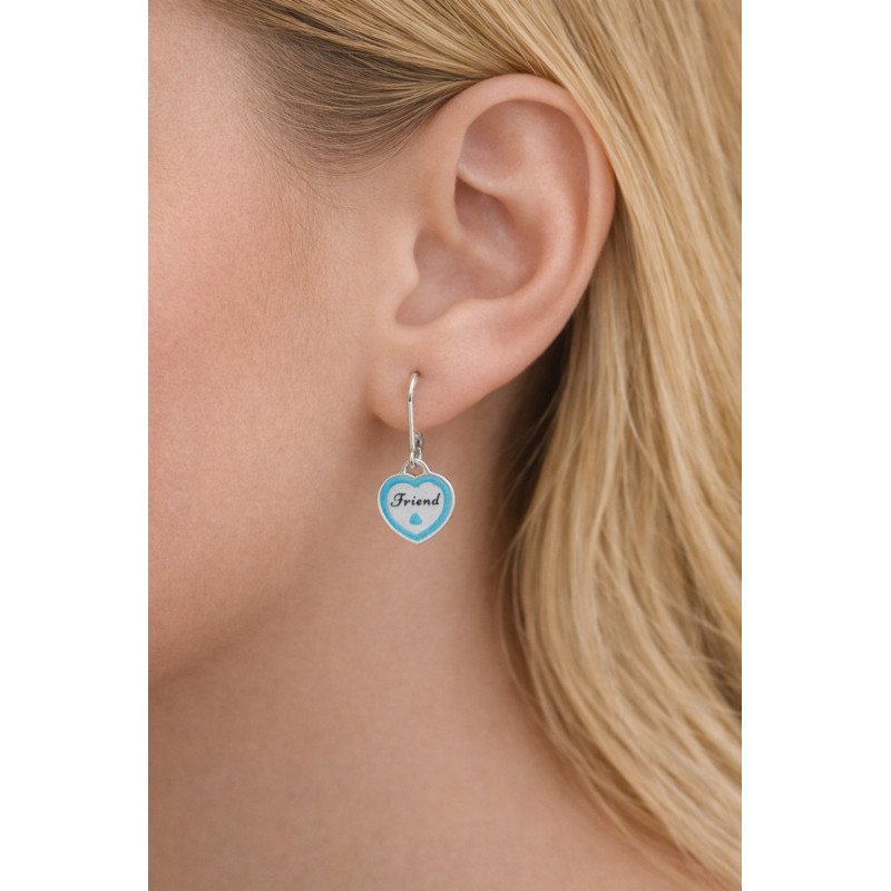 Boucles d'oreilles Femme Pendante Coeur Bascule Laque Bleu Friend. Acier.