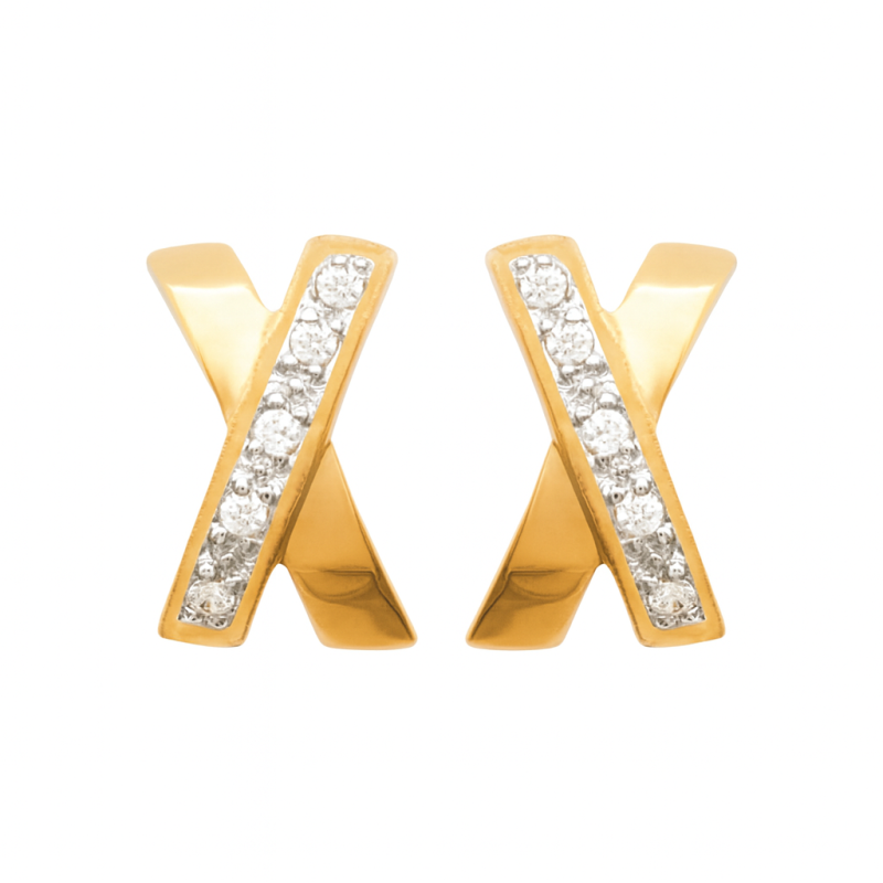 Boucles d'oreilles Croix. Plaqué-Or. Oxyde de zirconium Blanc.