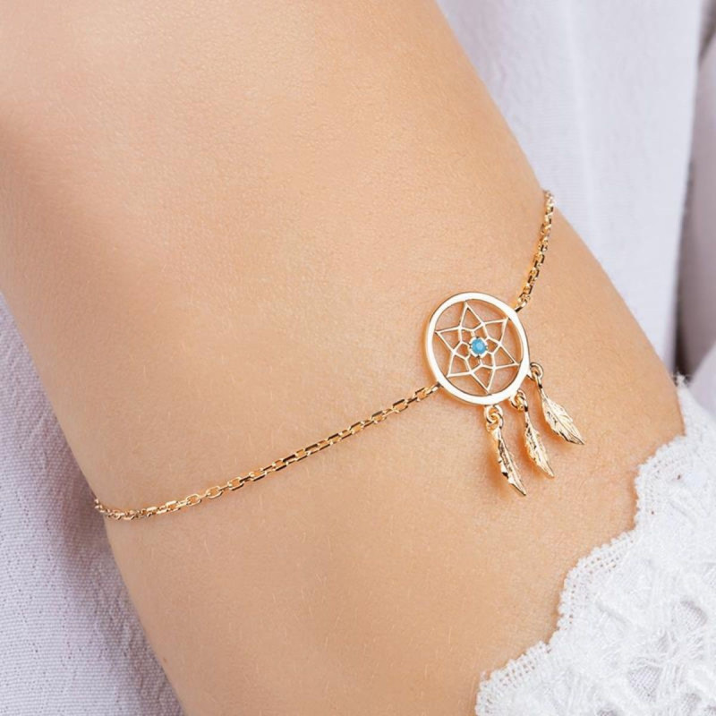 Attrapes Rèves, Plaqué Or et Imitation Turquoise, Longueur 18cm