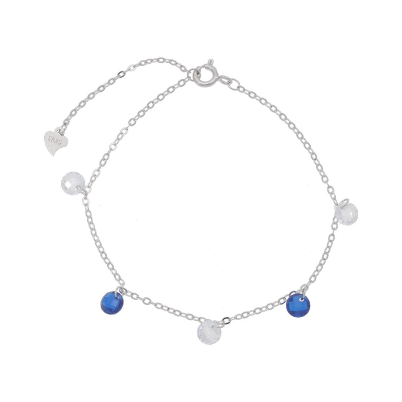 Bracelet 18cm Femme Pampille Facette. Argent 1,60gr Blanc. Oxyde de zirconium Bleu saphir Blanc.