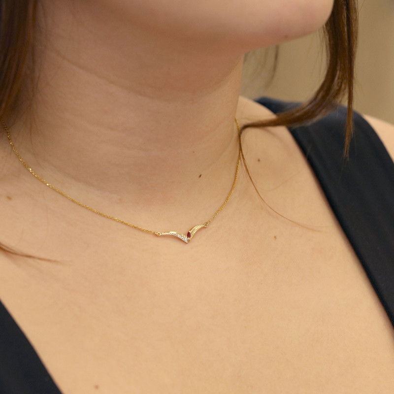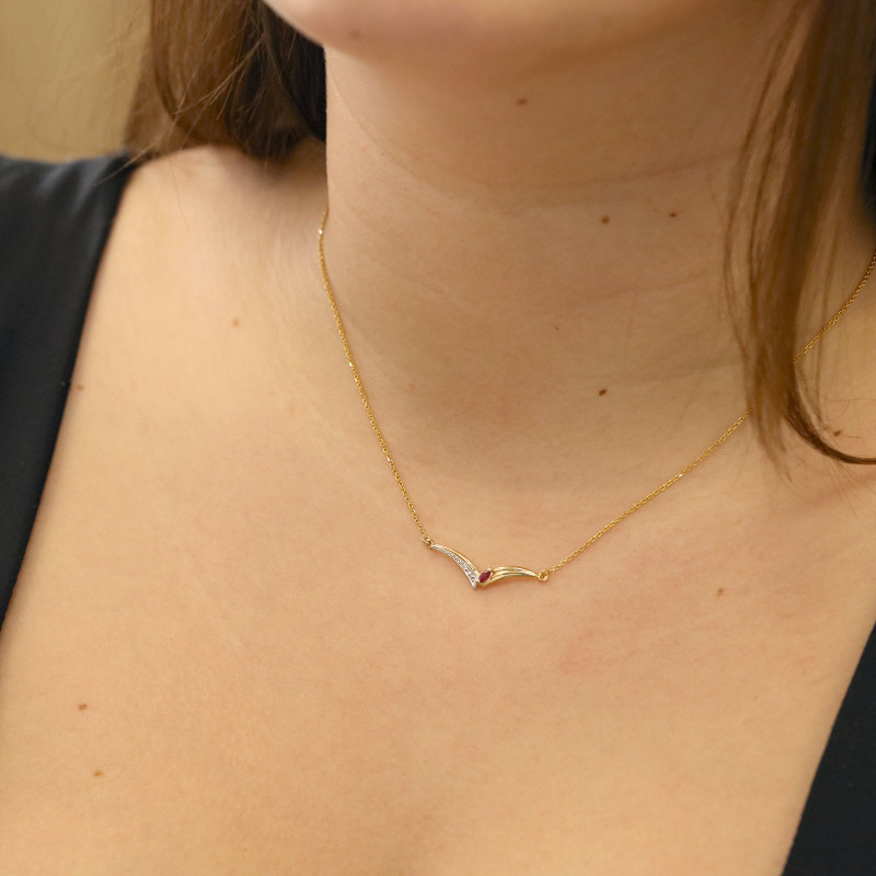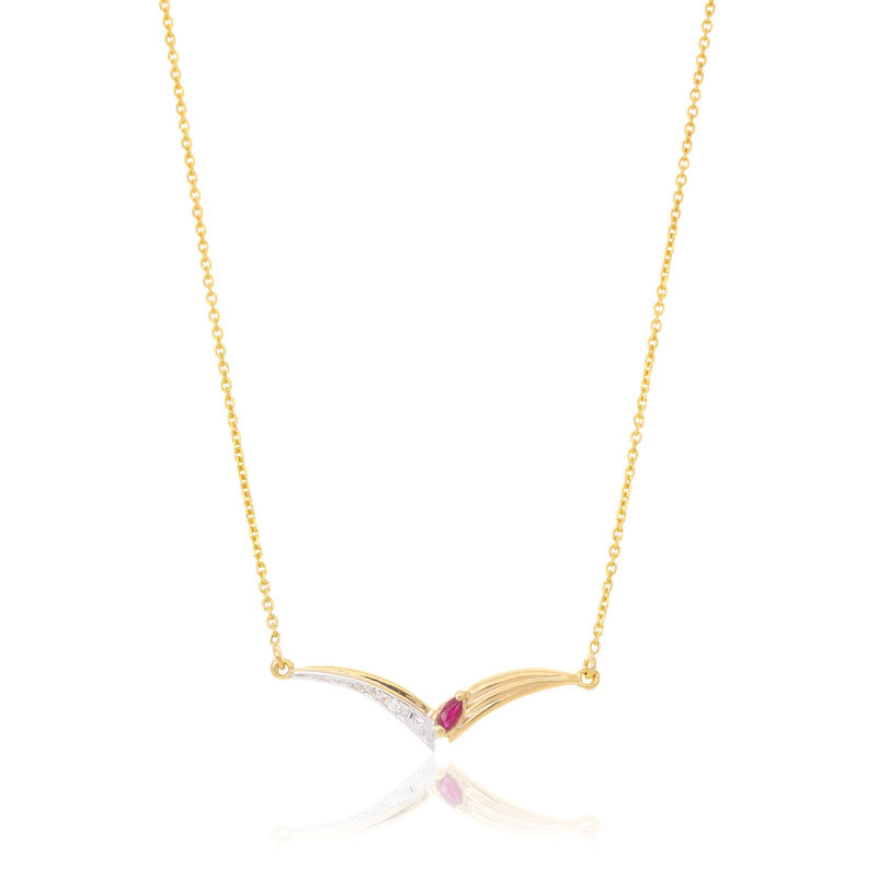 Collier 42cm Forçat. Or 375‰ 1,60gr Jaune. Rubis Navette 4/2. Diamant 0,010ct H/SI.