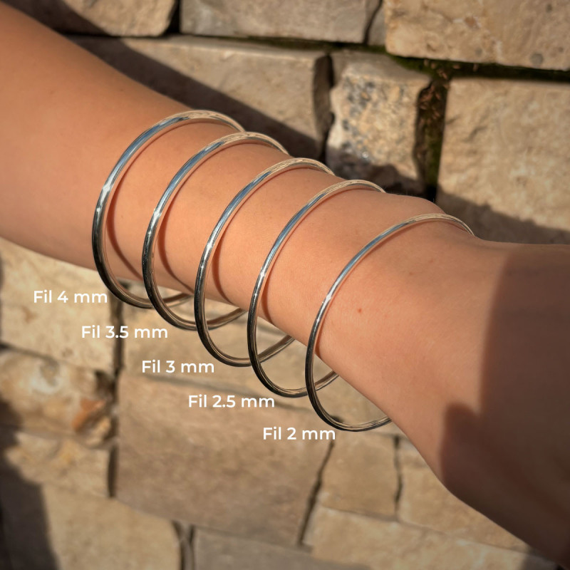 Jonc fil 2mm 50mm Fait Main Rond Massif. Argent 5,20gr Blanc.