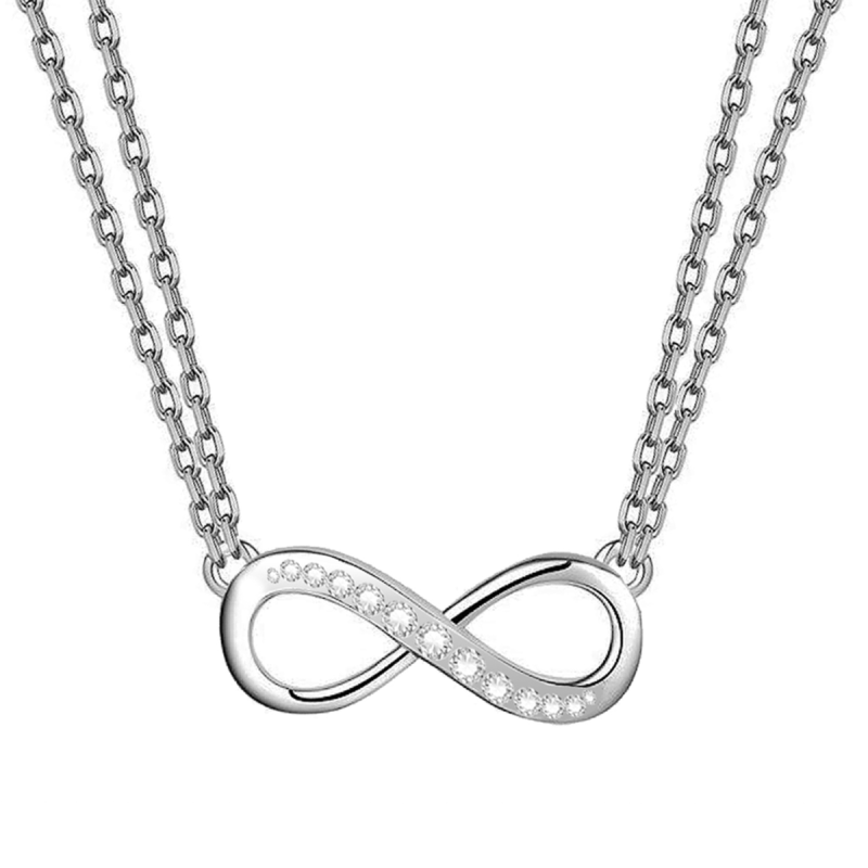 Collier 50cm Femme 45+5CM Infini 2 Forçat Mousqueton. Acier Blanc. Oxyde de zirconium Sertis-Grains Blanc.