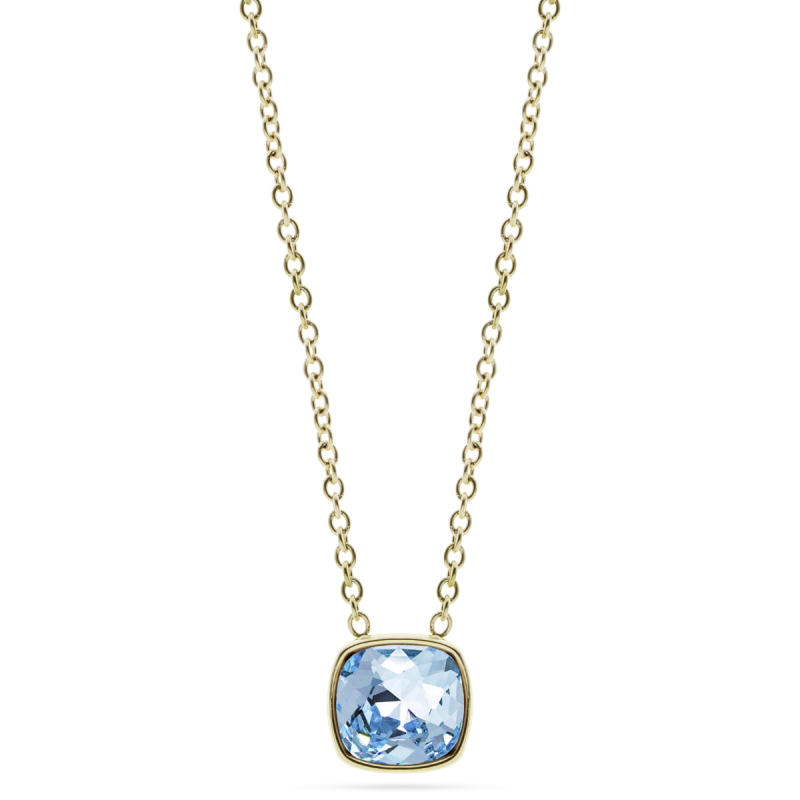Collier 50cm Femme 45+5CM Carré Facette Forçat Mousqueton. Acier Jaune. Oxyde de zirconium Sertis Clos Bleu.