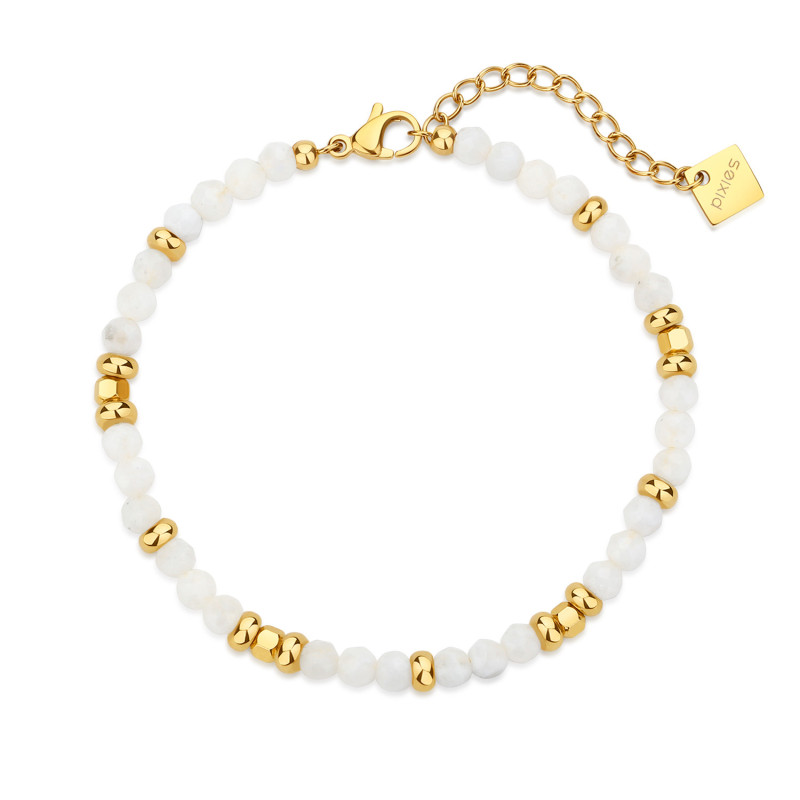 Bracelet 19cm Femme 16+3CM Perle Jaune Mousqueton. Acier Jaune. Pierre de lune Blanche