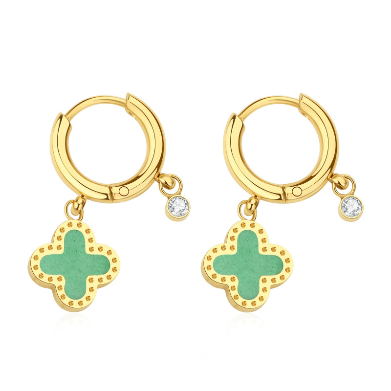 Acier, Oxyde de Zirconium, Aventurine, D10mm, Trèfle , PEH0011-1GAV