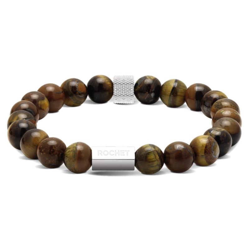 Bracelet 21cm Perle 8mm Rectangle Zen. Acier. Oeil de tigre.