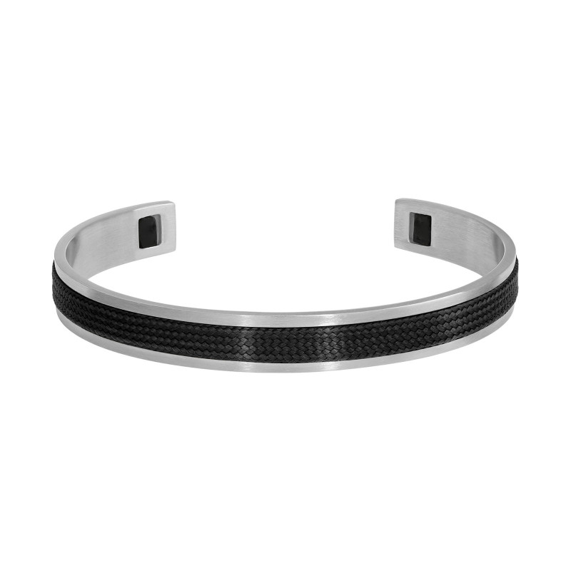 Jonc Homme Esclave Satiné 9MM Corde Noir. Acier Blanc.