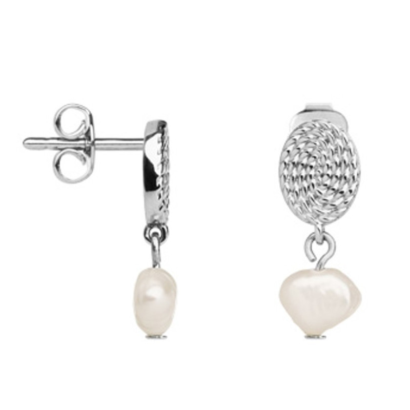 Boucles d'oreilles Femme Clou Ovale Pampille Perle poussette. Argent 2,63gr Blanc. Perle Blanche.