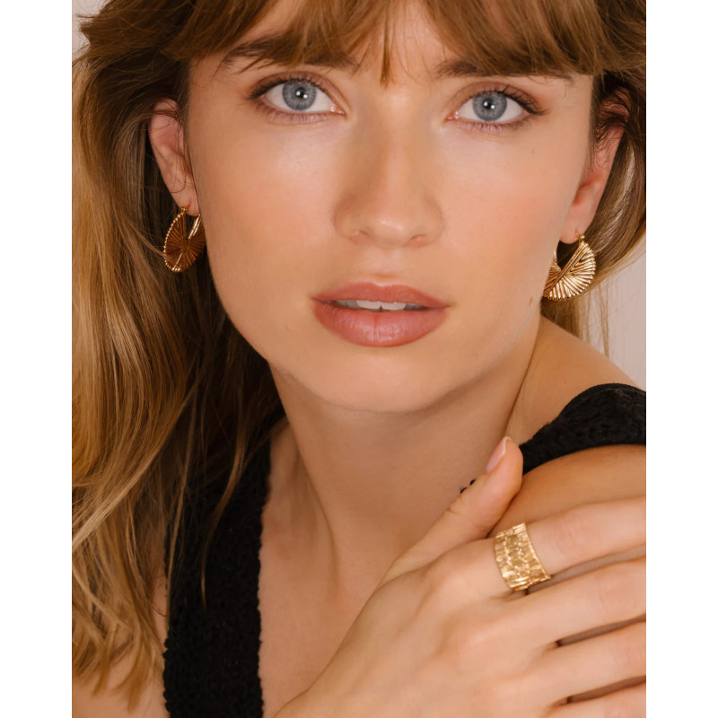 Boucles d'oreilles Femme Clou Rond Strié Charniere. Plaqué-Or Jaune.