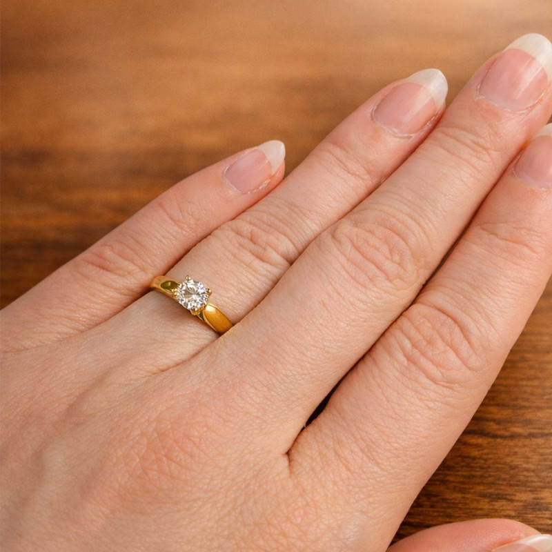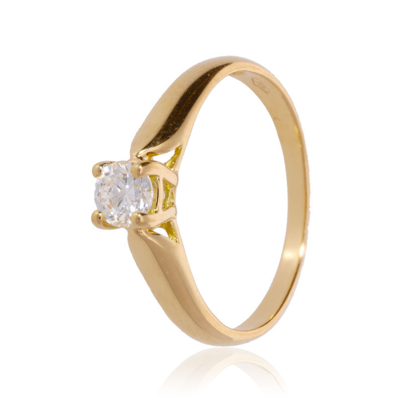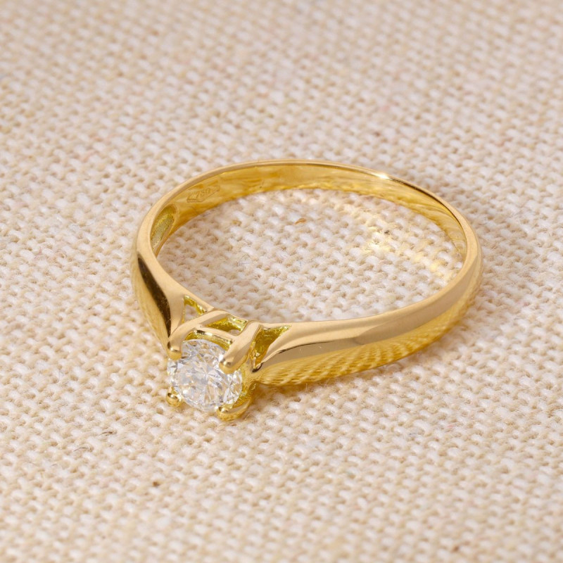 Solitaire 54d. Or 375‰ 1,44gr Jaune. Diamant Laboratoire (de synthèse) 0,130ct Griffes F VS.